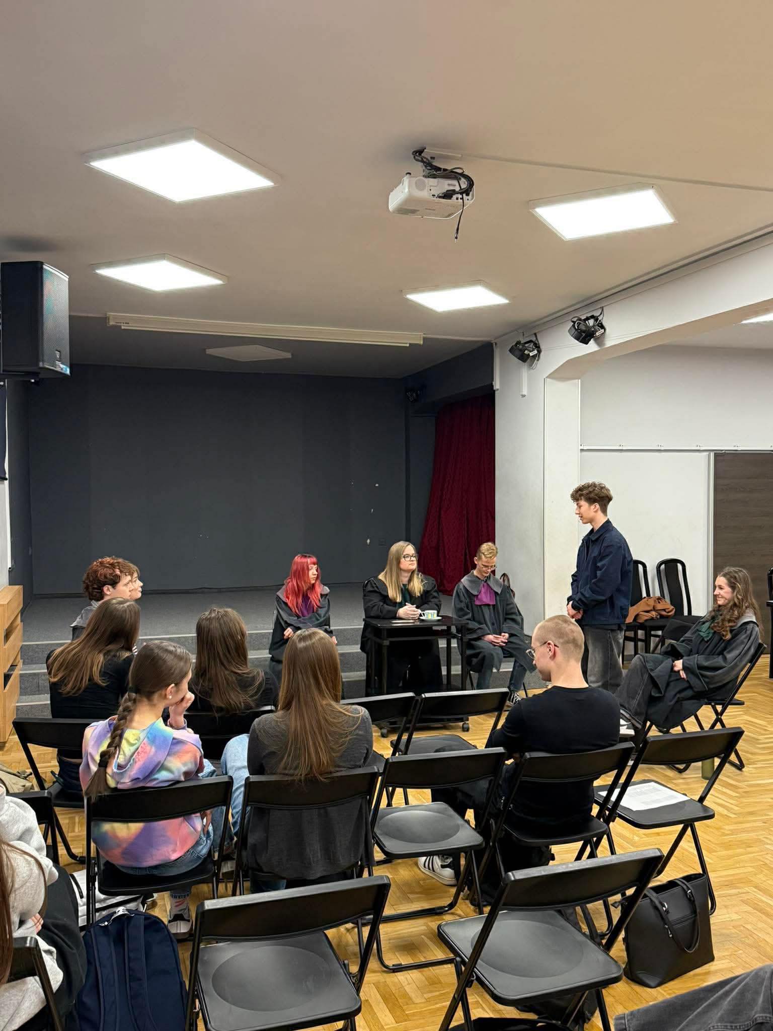 Największym zainteresowaniem cieszyła się symulacja rozprawy sądowej, w której mogliśmy aktywnie uczestniczyć. To doświadczenie pozwoliło nam wczuć się w role uczestników procesu i zobaczyć, jak wygląda przebieg rozprawy „od środka”.